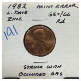 1982 LARGE DATE MEMORIAL PENNY CENT STRUCK THRU |