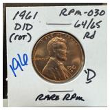 1961-D/D RPM-030 MEMORIAL PENNY CENT |