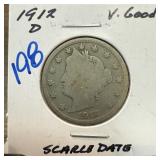 1912-D LIBERTY V NICKELSCARCCE DATE |