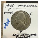 1945-P JEFFERSON SILVER WAR NICKEL SPLIT LAMINATE |