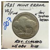 1921 BUFFALO NICKEL REV CLASHED W OBV DIE |