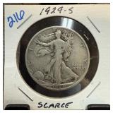1929-S WALKING LIBERTY SILVER HALF DOLLAR SCARCE |