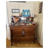 Furniture: Oak 8 Drawer Dresser with Mirror/ matching 5 Drawer Dresser, Full size Oak Bed headboard & foot board w/box springs & mattress, 4 Drawer Dresser, 3 Upholstered Recliners (excellent condition), Vintage Dressers w/ mirrors, Upholstered sofa (excellent condition w/ reclining seat), Oak desk, Vintage Sears Robuck Sewing machine w/ attachments, Vintage OakDining table w/6 chairs & 4 leaves, Vintage Rolltop Desk, Vintage Display Hutch w/ glass doors, Vintage Oak 3 drawer / 2 Cupboard Sideboard w/ Mirror, 1950’s Chrom kitchen table, 4 Oak Chairs w/ wheels, Wooden Coat Rack, Vintage Glass Door China Cabinet, Oak bookcases, End tables, Coffee table, vintage Lamp table, Vintage School desks, Floor lamps, Table lamps,Pictures, Mirrors & Wall décor, Metal Filing cabinets, office chair, Vintage Wooden Childs high chair, and so much more….