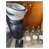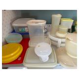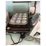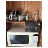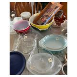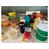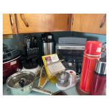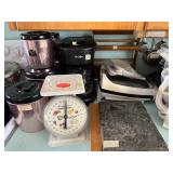 Kitchen: Attachments: Hitachi Bread Machine, Osterizer Juicer, Sunbeam Mixer attachments, Black & Decker Convection Oven, Mr Coffee, Hamilton Beach Roaster Slow Cooker, Presto Salad shooter, Lean & Mean Grilling machine, American Family Scale, Amana Radar-range Microwave, Norelco EZ Steam Iron, Frigidaire Freezer, Pots & Pans, Cast Iron Skillets, Cast Iron Roaster, Pyrex, Corning Ware, Bake Ware, Service ware, Cooking tools, Tupperware, Kitchen Stepstool, and more…..