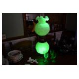 Fenton CUSTARD SATIN Poppy Gone Wind 23" tall Electric Lamp Uranium GLOWS GREEN