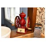 Antique Cast Iron Hand Crank Double Wheel Manual Red Coffee Grinder Mill BARJAK