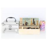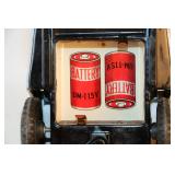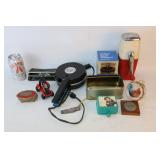 CATALOG TEXT BELOW: 1 - Colson Commander 189 Bicycle VINTAGE 2 - Retro "Drink Dr. Pepper" Soda Bottle Cooler Complete with plug and sandwich tray. 3 - Mid Century Cat Bubble Bath 4 - MId Century Double Desk Lamp 5 - Empolu Italy Green 3-Sided Decanter Genie Bottle 6 - Vintage Ansco Camera with Accessories 7 - Antique Stoneware Crock 8 - Vintage Imperial Glass Smoke Lace Bowl 9 - Vintage Metal Fishing Minnow Bucket Insert 10 - Jim Beam American Basic Advertising Mirror 11 - 2 Vintage Hazel AtlasRed Pyrex Dutch Skaters Bowls 12 - New Old Stock Planters Peanut Counter Display Jar 13 - Beautiful Figurine 14 - West Bend Flavo-Matic Aluminum Coffee Perculator No power cord. 15 - Budweiser Cups and Mug 16 - Planters Peanuts "Mr. Peanut" 75th Anniversary Jar 17 - 3 Budweiser Beer Stein Mugs 18 - 1950's Peoria Cake Plate Carrier 19 - Indian Head Log Cabin Syrup Jar/Bottle with Lid 20 - 2 Jim Beam Liquor Decanters-Harold's Club Reno 21 - 3 Jim Beam Liquor Decanters 22 - Card Games Book, Poker Chips, Jacks & More 23 - Imperial Glass Colonial Lady Glass Bell WOW 24 - Vintage Dragon Dominoes & 25 - El Paxo Tobacco Tin & Vintage Wood Checkers Chips 26 - MCM Tomato Sugar Bowl & Salt/Pepper Shakers Set 27 - Burley & Bright Half and Half Tobacco Tin 28 - Vintage Playing Cards 29 - MCM Aluminum Quick Cube Ice Cube Trays 30 - Antique Blue Band Stoneware Crock 31 - Vintage Brownie Junior Camera 32 - Vintage Necklace 33 - Glass Flower Frog 34 - Vintage Marbles and Glass Candy Jar 35 - Vintage Diana Camera Kit 36 - Vintage Table Cigarette Lighter Omscolite Automatic Superlighter 37 - Vintage Panasonic Transitor Radio 38 - 2 Vintage Fire King White D Handle Coffee Cups 39 - Vintage Puppy Dog Chalkware Figurine 40 - Vintage Pickett Slide Rule 41 - 2 Vintage Ashtrays 42 - Set of 4 Bascal Vintage Aluminum Cups 43 - Vintage Polaroid Camera with Extras 44 - Vintage Automobile Fender Skirts 45 - Planter's Peanut 75th Anniversary Mr. Peanut Jar 46 - Vintage Kromex Glass Relish Dish 47 - 2 Vintage Planters-Royal Copley 48 - 2 GE Milk Glass Mixing Bowls 49 - MCM Sunburst Aluminum Pitcher and 10 Tumblers 50 - Vintage Games 51 - Vintage Radio Shack Camaro Z28-E R/C Car 52 - Child's Playset, Instument and More 53 - MCM Kentucky Derby Horse Glasses with Rack 54 - Groovy Retro Pedestle Cups 55 - 3 Vintage Toy Guns and Horse 56 - Vintage Touring, Rook and Uno Card Games 57 - Socket Tool Set 58 - Wagner Ware Cast Iron Skillet 59 - Vintage Stoneware Child's Playset 11 Peaces Wheat 60 - Lynn Lupetti Puzzle 61 - Cut Glass Dish, Butter Server and Jelly Jar 62 - Depression Glass Divided Dish 63 - 75th Birthday "Mr. Peanut" Planters Peanut Jar 64 - Art Deco Pottery Vase marked USA 65 - Aluminum Bowls, Ashtray Set and More 66 - Retro Yellow Metal Bread Box 67 - Mid Century David Douglas Coffee Glass Karafe Appears new in box 68 - Retro Smoked Glass Bowl & 3 Glass Balls 69 - Dormeyer Silver Crest Retro Chrome Mixer Dormeyer Silver Crest 70 - 2 Budweiser Beer Steins Mugs 71 - Vintage Corning Ware Blue Cornflower Coffee Pot 72 - Carnival Glass Bowl, Smoked Ribbed Vase-Fish Bowl 73 - Men's Bow, Boa Ties and Cuff Links 74 - Syroco Gold Burwood Wall hangers 75 - Vintage Hatchet 76 - 2 Vintage JH Chalkware Military Figurines 77 - 2 Vintage Cigarette Lighters -Bowling 78 - Native American Pottery Bowl Looks like Hopi to me, but I am no expert. 79 - Vintage Pink McCoy Pottery Planter 80 - 1914 The Calendar of Golden Thoughts 81 - Ezra Brooks Street Car Liquor Decanter 82 - Pottery Bowl, Vase, Kids Glasses & Plate 83 - Wagner Ware Cast Iron Skillet 84 - Vintage Wood & Rope Foot Rest 85 - Griffin Oak Shoe Shine Box and Contents 86 - Lot of Assorted Items-All for one money! 87 - Hand Made Wood Jewelry Keepsake Box 88 - Large Lot of Hand Made Lace Doilies and More 89 - Vintage Singer Sewing Machine 90 - Vintage Coleman Lantern 91 - Galvanized Metal Fishing Lure Minnow Bucket 92 - Vintage McCoy Pottery Flower Cookie Jar 93 - 5 Beam's Choice Collector Edition Liquor Decanters 94 - Antique Ladies Dresses 95 - Military Foot Locker 96 - Retro Coca Cola Soda Picnic Cooler with Tray 97 - Miller High Life Wildlife Advertising Mirror No 1 98 - Sebring Ohio MCM Canster Set 99 - Dabs Mid Century Amber Glass Decanter Bottle 100 - Jim Beam Brown Horse LIquor Decanter 101 - Jim Beam Black Horse Liqquor Decanter 102 - Jim Beam Gray Horse Liquor Decanter Bottle 103 - Wild Turkey Whiskey Liquor Decanter Bottle 104 - Jim Beam Liquor Decanter Bottle 105 - Lockheed Vega 5B Die Cast 1st Edit Airplane 106 - Vintage Goodies Lot 107 - 3 Signed Gene Clevenger Wood Carved Shoes 108 - Pabst Blue Ribbon Beer Wildlife Mirror 109 - Pabst Blue Ribbon Beer Wildlife Mirror 110 - Miller High Life Beer Wildlife Mirror 111 - 2 Antique Draw Knifes Knives 112 - Trowelsand Caulk Gun 113 - Lot of Assorted Glasses and Cup 114 - RARE Collector's 1989 Ducks Unlimited Decanter 115 - 1960's Nomura Japan Military Combat Jeep Toy 116 - Small Honey Bottles Jars 117 - 3 Vintage Corning Ware Blue Cornflower Casseroles 118 - 1950's MCM Viking Ship TV Lamp 119 - Vintage Polaroid Automatic 100 Camera w/Extras 120 - Assorted Dishes 121 - 6 Piece Milk Glass Lot 122 - Vintage Jewelry Lot 123 - Vintage Carols Books 124 - Rather "Dark" Vintage Ashtray 125 - 2 Mid Century Ladies Dresses 126 - 3 Vintage Cameras 127 - Vintage FIre King Casserole Dish with Lid 128 - Vintage Tooled Leather Ladies Purse 129 - Vintage Chips and Dip Server 130 - Lead Crystal Farm Rooster 131 - Wild Turkey Liquor Decanter Mini No 1 132 - Vintage Carro Game Board 133 - Vintage Wooden Game Board 134 - Mid Century Key Wall hangers 135 - Adorbs Kitty Cat Cookie Jar 136 - Lot of 7 Milk Glass Vases 137 - Set of Mount Clements Mildred Pattern China 138 - Vintage Jewelry Box and Contents 139 - Vintage Metal Roller Skates 140 - Marx Midge Spring Race Car & Sapin Stake Truck 141 - Vintage Camera with Leather Bag 142 - Vtg Electric Roadways Sports Car Rally Set Complete with power box, track and 2 cars all in original box!! 143 - Lot of A