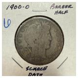 1900-O BARBER SILVER HALF DOLLAR SCARCE DATE |