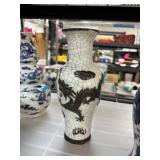 SIGNED CHINESE CRACKLEWARE DRAGON VASE REPAIRED |