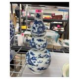 CHINESE GOURD VASE BLUE & WHITE W DRAGONS |