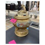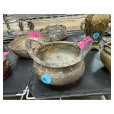 LARGE CHINESE BRASS HANDLED CENSER INCENSE POT |