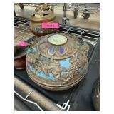 LARGE CLOISONNE HIGH RELIEF DRAGON LIDDED BOWL |