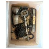 1950’s Coca-Cola Metal Cooler Vintage Green Cooler Vintage Kitschy Salt & Pepper Shakers, Occupied Japan Teal Ceramic Canister Set Collection of Skeleton Keys Vintage Costume Jewelry Vintage Pocket Watches Zippo Great Lakes Steel Corp Zippo Lighters Collection of Vintage Pocket Knives Ideal’s Turkey Call Vintage Yale Locks Brass Railroad Keys Vintage Ammunition Vintage Stoneware Halls Autumn Leaf Murano Glass Collection of hand-painted Fenton Glass Vintage Cast Iron Tractors Longaberger Baskets Vintage Milk Bottles Vintage Tupperware Donna Karen Gold-Toned Bowl Vintage Pyrex Caboodle Farmhouse Décor Vintage Cameras: Polaroids, Kinax, Konica Collection of Shiny Brite Ornaments Sewing Accessories Starburst Clock Vintage Linens Lionel Trains Bose wave Guitars: 2013 Urban, Madeira, Vintage Beer Lights & Bar Accessories Vintage Rubber Faced Plush Santa Collection of Vintage Pennants Vintage Luggage Oscar De La Renta Perfume and Powder Vintage Table Top Santa Blow Molds 3 Gallon Crock with Spout, No Lid Jadeite Ashtray Roseville Audels Instructional Manuals Mid-Century Drinking Glasses Vintage Trucker Hats Aluminum Christmas Tree Bone-Dry Red Head Camo Jacket with Corduroy Collar Craftsman Power Tools Ryobi Cordless Shrub Cast Iron Door Stop Vintage Kiski Gear AMT 69 Chevelle Model MPC Volkswagen Model Sports Cards Action Figures: Star Wars, Marvel, Dinosaurs, More Snap-on Tools Milwaukee Tools US Military 1942 Bayonet with Scabbard Ceramic Christmas Tree Canada Dry Crates AMF Fire Pedal Car Pepsi Store Display Anvil Bench Vise Brass Bells Vintage License Plates