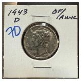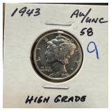 1943 MERCURY SILVER DIME HIGH GRADE |