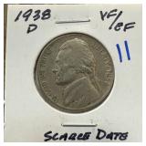 1938-D JEFFERSON NICKEL SCARCE DATE |