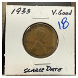 1933 WHEAT PENNY CENT SCARCE DATE |