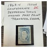 1863-4 CONFEDERATE JEFFERSON DAVIS ISSUE STAMP |