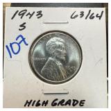 1943 WWII STEEL WHEAT PENNY CENT HIGH GRADE |