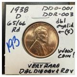 1938-D WHEAT PENNY CENT DOUBLE DIE OBV & REV |