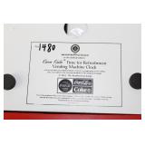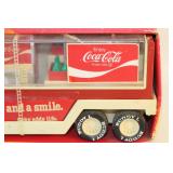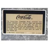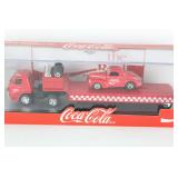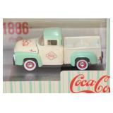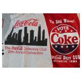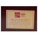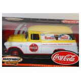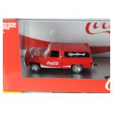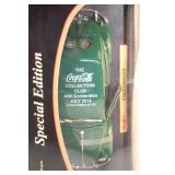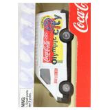 CATALOG TEXT BELOW: 1 - Coca Cola Table Lamp 2 - Set of 6 Johnny Lightening Coca Cola Die Cast 3 - 2 Coca Cola Glass Canisters 4 - Mid-South TCCCC Salutes America Septemberfest 200r Mid-South TCCCC Salutes America Septemberfest 2002 Canister 5 - 4 Assorted Coca Cola Glass Canisters 6 - Festive Coca Cola Party Plasticware 7 - Poolside Safe Coca Cola Party Serving Items 8 - 23 NIP "Tome Coca Cola" Delivery Trucks 9 - Coca Cola Musical Polar Bear Centerpiece/Ornament NEW in box 10 - Assorted Coca Cola Glasses 11 - 1955 Chevy Stepside Pickup Johnny Lightening Die 12 - 3 Olympic Coca COla Toy Trucks/Vans DIe Cast 13 - Matchbox Collectible "Have a Coke" Truck 14 - 5 NEW Coca Cola Toy Vehicles 1988 Ford Mustang GT 1965 Ford Econoline Truck 1957 Chevrolet Sedan Delivery 1979 Chevrolet Scottsdale Die Cast Truck 1966 Chevrolet Corvette 427 15 - Vtg Fisher Price Little People Coca Cola Truck 16 - Coca Cola Santa Clause Bobble Head 17 - Coca Cola "Disco Nights" Juke Box Polar Bear NIB 18 - 1500 Piece Coca Cola Puzzle NEW Sealed 19 - Display Case Full of Coke PIns & Collectibles 20 - Double Sided Coca Cola Store Advertisement 21 - Set of Coca Cola Glass Mugs 22 - Asssorted Coca Cola Collectibles 23 - Die Cast Cars in Coke Flavors WOW NIP 1957 Chevrolet Bel AIr Gasser, Fanta-1973 Chevrolet K5 Blazer, 1959 Chevrolet Fleetside, 1969 Plymouth Barracuda diet Coke, 1941 Willys Coupe Gasser-Sprite, 1955 Dodge La Femme-Cherry Coke 24 - Assorted Coca Cola Die Cast Cars & Trucks NEW 1968 SHelby G.R.500KR, 1972 Chevrolet Camaro Z28, 1976 Chevrolet Scottsdale 4 x 4 Truck, 1970 Ford Mustang Mach 1 351, 1950 Studebaker 2R Truck, 1958 Chevrolet Impala, 25 - Set of Coca Cola Flavors Toy Die Cast WOW NEW 1970 Ford Torino Cobra, 1957 DeSoto Fireflite, 1960 VW Double Cab Truck, 1970 Dodge A100 Panel Van, 1970 Ford F-100 Custom 4 x 4, 1970 Nissan Fairlady Z432, 26 - Coca Cola Serving Set 27 - 2 NEW Coca Cola Puzzles 28 - 2 NEW Sealed Coca Cola Puzzles 29 - Assorted Coca Cola Glasses & Canister 30 - Coca Cola Coasters, Ashtrays and More 31 - The Coca Cola Charm Bracelet with COA 32 - Adorable Coca Cola Bears 33 - Coca Cola Diner Mini Clock New in Case 34 - "Coca Cola Sold Here Ice Cold" Coat Rack 35 - 2 Siku Eurobuilt Die Cast 1/55 scale VW Rabbit Pick-UP and Volkswagon Mini Van. 36 - Lot of 20 Coca Cola T-Shirts (NEW) 37 - Lot of 20 New Coca Cola T-Shirts 38 - Lot of 20 Coca Cola T Shirts NEW 39 - Lot of 20 Assorted Coca Cola T-Shirts 40 - 11 Coca Cola Shirts 41 - Retro Coca Cola T-Shirts 42 - 6 Coca Cola Sports Related Shirts 43 - Coca Cola Die Cast Metal 1/25th Scale Pickup Truck Die Cast Metal 1/25th Scale 44 - Coca Cola Ford Model T Collectible NIB 45 - 1:24 Scale Die Cast Nascar 1 of 1800 46 - Matchbox Collectible Coca Cola Volkswagon Bug 47 - Matchbox Collectibles 1957 GMC Van Coca Cola 48 - 1931 Coca Cola Delivery Truck NIB 49 - 2 Coca Cola Syrup Jugs (Cocaine Removed LABEL) 50 - 2 Coca Cola Tubs 51 - Vintage Coca Cola Blanket Bag 52 - 2000 Piece Coca Cola Puzzle Sealed 53 - Coca Cola 1500 Piece Puzzle Sealed 54 - 2000 Piece Coca Cola Puzzle NEW and Sealed 55 - Vintage "Enjoy Coca Cola" Fountain Top Sign 56 - 4 Piece Racing Set-Coca Cola Die Cast Models 57 - 1963 Volkswagen Type 2 (T1) Pickup 58 - 2 NEW Coca Cola Puzzles in Tins 59 - AMT 1109 Coca Cola Model FB Beaded Fruehauf Van Model Kit 1/25 60 - 4 Piece Set of Coca Cola Mugs 61 - "Enjoy diet Coke" Dry Erase Board 62 - 2 Coca Cola Welcome Signs 63 - "Things go better with Coke" Vintage Clock 64 - Smokey Says; "Prevent Forest Fires" Bear Coca Cola 65 - Retro Coca Cola "Stay Refreshed" Sign 66 - Can You Pick Up on Tuesday April 1st ??? IF not, have your winnings shipped or get someone else to claim your winnings! 67 - Bachman G Kit Coca Cola Train Wooden Box Car 68 - Coca Cola Wall Hanging Wooden Crate Shelf 69 - Coca Cola Checkers Game Board 70 - Coca Cola Santa Claus 71 - Lot of Coca Cola Ornaments 72 - Coca Cola Polar Bear Mechanical Bank Limited Edit 73 - Crystal Coca Cola Pola Bear Family 74 - Coca Cola Musical Collection Soda Fountain 75 - 2 Coca Cola 1000 Piece Puzzles 76 - Coca Cola Carousel Horse & Music Box 77 - 2 Coca Cola Napkin Dispensers 78 - NIB Coca Cola Straw Dispenser & Case of Straws 79 - Assorted Wendy's Cycle On Accessories 80 - 6 Assorted Coca Cola Polar Bear Theme Die Casts 1969 Ford Mustang Funny Car, 1965 Ford Econoline Truck, 1985 Chevrolet Camaro Iroc-Z, 1955 Chevrolet Bel Air Gasser, 1976 GMC Sierra Grande 15 Pick Up Truck, 1988 Ford Mustang GT, 81 - Lot of Assorted Coca Cola Collectibles 82 - Lot of Coca Cola Ornaments 83 - 3 Coca Cola Train Accessories New in Box 84 - 5 Coca Cola Die Cast collectible Cars 1957 Chevrolet Sedan Delivery, 1964 Dodge A100 Panel Van, 1956 Ford F-100 Tow Truck, 1971 Dodge Charger HEMI, 1969 Datsun Bluebird 1600SSS, 85 - 6 Piece Set of Coca Cola Beanies 86 - 5 Packages of Coca Cola Coasters 87 - Coca Cola Mini Clock New in Case 88 - Matchbox Collectibles "Anniversary Year" Truck 89 - Coca Cola A Year in Box Calendar Sets 2004 and 2005 90 - 2 Corgi Die Cast Coca Cola Vans NIP 91 - Nascar Mini-Cars Second Editions 92 - Set of Racing Nascar Coca Cola Drinking Glasses 93 - Assorted Coca Cola Collectibles 94 - 6 Assorted Coca Cola Polar Bear Beanies 95 - 1955 Chevy 5100 Step Side Die Cast Truck NIB 96 - Coca Cola Cookie Plate & Tumbler plus Ornament 97 - Coca Cola Santa Clause Bobble Head 98 - 3 NIB Coca Cola Trim a Tree Ornaments 99 - 1966 Volkswagon Beetle Coca Cola Die Cast NIB 100 - 3 NEW 100 Piece Coca Cola Puzzles 101 - Coca Cola Polar Bear family 102 - Coca Cola on Ice Stein & Santa's Reward Stein 103 - Clear Glass Coca Cola Place Setting 104 - Assorted Coca Cola Christmas Ornaments 105 - 1913 Model T Van Model Kit Coca Cola 106 - Glass Display Shelf for Your Coke Miniatures 107 - Coca Cola Soda Machine MIniature Musical Bank 108 - Crystal Coca Cola Santa Clause Figurine 109 - 2 Coca Cola Music Boxes 110 - Coca Cola Beanie Babies 111 - Coca Cola Stocking Holder 112 - 3 Assorted Coca Cola Toy Vehicles 11