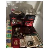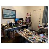 **Please be advised that all police-related items have been moved to the main table in the living room. Collection of Vintage Costume Jewelry Tin Type Photographs Vintage Straight Razors Vintage Cameras and Photography Accessories Vintage Smith & Wesson Black Woven Leather Design Police Holster City of Pittsburgh Police Collectables: Badges, Pins, Clothing, More Angel Décor Empire Blow Mold Easter Bunny Collection of Seasonal Melted Popcorn Wall Hanging WWII Military Boot Covers Vintage Lead Soldiers Vintage Furniture Throughout the home, Dining Table, Sever, China Hutch, Side Tables, Sofa Tables, Bookshelves, Plant Stands, Much More Kent Coffey Mid-Century 4 5 Piece Bedroom Set WWII Black Leather Cartridge Pouches Remington Mle 1907 Berthier Rifle, Parts Only WWI Brodie Helmet WWI M15 Adrian Helmet Collection of Handstitched Quilts Vintage Kitchen Wares : Canister Sets, Pyrex, Corning Ware, More Depression Glass Vintage Clothing: Harley, Pittsburgh Sports, Christmas Sweaters & Crewnecks, More Record Albums Sweetheart Pillow Cases Football Trading Cards Collection of Pocket Knives Artwork Vintage Christmas Décor Garage Vintage Wringer Washer Vintage Christmas & Other Seasonal Décor Ammunition Lanterns