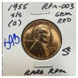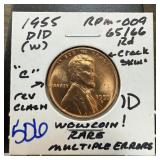 1955-D/D WHEAT PENNY CENT RPM-009 MULT ERRORS |