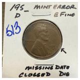 195? MINT ERROR CLOGGED DIE MISSING DATE |