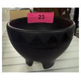TIC USA 3 FOOTED BLACK POTTERY BOWL |