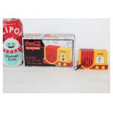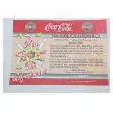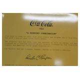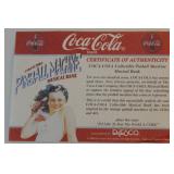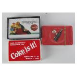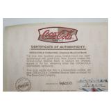 CATALOG TEXT BELOW: 1 - Rare Coca Cola Wood Syrup Barrel Lid 2 - 1966 Coca Cola Diamond Can Advetising Framed 3 - Vintage Coca Cola Delicious & Refreshing Clock 4 - Things Go Better with Coke Clock 5 - Coca Cola Side Car on Motorcycle Picture 6 - 1929 Lockheed Air Express Coca Cola Bank ERTL 7 - ERTL 1931 Coca Cola Airplane Spearman 8 - Sprite View Master 9 - Vintage COca Cola Aerobic Doll New Old Stock 10 - Coca Cola Aerobic Fashion Kits All New Old Stock 11 - Coca Cola Collectorors Club Truck 1995 12 - "Lets Celebrate America" Banner Coca Cola 13 - Blockbuster and Coca Cola Banner 14 - Coca Cola Pedal Palne 15 - Vintage Coca Cola MIniature Plastic Cooler q 16 - Assorted Coca Cola Cassette Tapes and More 17 - Vintage Turbo Racing Team Car 18 - Vintage Coca Cola Paper Popcorn Bag Framed 19 - Barbie Doll Coca Cola Clothes 20 - Coca Cola Collectors Club View Master 21 - 2 Coca Cola Bingo Game Cards 22 - Coca Cola Notebooks 23 - Coca Cola License Plate 24 - Coca Cola Name the States School Notebook 25 - Sign of Good Taste Retro Coca Cola Playing Cards 26 - Zing refreshing New Feeling Coke Playing Cards 27 - Refreshment through 70 Years Coke Cards 28 - Coca Cola Refresh Playig Cards 29 - 1951 Coca Cola playing Cards 30 - Diet Coca Cola Dry Erase Board 31 - Coca Cola Bottle Tapestry 32 - Collection of Coca Cola POGS 33 - Assortment of Coca Cola Bottle Openers 34 - Assorted Coca Cola Collector Cards 35 - Lot of Assorted Coca Cola Items 36 - Coca Cola Items 37 - Vintage Buddy L Coca Cola Delivery toy Truck 38 - Lot of Assorted Coca Cola Collectables 39 - Assorted Coca Cola Playing Cards 40 - Coca Cola Stationary and Cards 41 - Assorted Coca Cola Playing Cards 42 - Coca Cola Playing Cards 43 - K.C. 500 and 600 Racing Coca Cola Cards 44 - Assorted Baseball & Coca Cola Cards 45 - Assorted Porcelain Coca Cola Sewing Thimbles 46 - Coca Cola "Slow School Zone' Crossing Guard Figure 47 - Assorted Coca Cola Pocket Knives 48 - Bottle Caps and Coke Playing Cards 49 - Tall "Ice Cold Coca Cola" Sign 50 - Vintage Coca Cola Metal Sign 51 - "Enjoy Coke" Sign 52 - Assorted Coca Cola Signs and Ads 53 - Enjoy Coca Cola Banner Sign 54 - 2 Very Vintage Coca Cola Metal Signs 55 - Cast Iron Coca Cola Base 56 - Coca Cola Bottle Return Cart 57 - Coca Cola Store Display 58 - 2 Coca Cola Ridge Club Signs 59 - Large Outdoor Enjoy Coca Cola Sign 60 - Coca Cola Sign 61 - NEW Store Promo Coke Advertising Kit 62 - Super Bowl LXXVIII Coca Cola Poster 63 - Coca Cola Mighty Refreshing Sign 64 - Old Framed Coca COla Poster Advertising 65 - Coca Cola Print 66 - Coca Cola Signed Art 67 - "Nothing Taste Like Coca Cola" Ad 68 - Coca Cola Poster 69 - Coca Cola & Bacardi Signs 70 - Always Coca Cola Sign q 71 - Ahhhh Coca Cola Bottle Sign 72 - Coca Cola Bottle Racks VINTAGE 73 - Coca Cola Cooler 74 - Plays Advertising Themes from Coca Cola 75 - Coca Cola Musical Playing Advertising Themes 76 - Coca Cola Musical Playing Advertising Themes 77 - Coca Cola Musical Playing Advertising Themes 78 - Coca Cola Musical Playing Advertising Themes 79 - Vintage Coca Cola Textbook Covers 80 - Coca Cola Have a Coke Tray 81 - 1966 Volkswagon Beetle Die Cast Coca Cola Car 82 - Coca Cola Silverware Set 83 - Coca Cola Delicious & Regreshing Metal Tray 84 - Coca Cola Army and Sailor Hats 85 - Coca Cola Pinball Machine 86 - 1985 Nostalgic Musical Bank Coca Cola Classic 87 - Coca Cola Soda Dispenser Bank with box 88 - Retro Coca Cola Soda Machine Bank 89 - Coca Cola Musical Bank 90 - Fountain Machine Musical Coca Cola 91 - Coca Cola Collectiable Clock 92 - Coca Cola Salt/Pepper Shakers & Toothpick Dispens 93 - 1940 Ford Sedan Cargo Van Die Cast Car 94 - Coca Cola Metal Tray with Festoon 95 - 3 Coca Cola Puzzles 96 - 6 Coca Cola Die Cast Collectable Cars 97 - Coca Cola Kitchen Towels 98 - 2 Coca Cola Caraffes 99 - 3 Coca Cola Puzzles 100 - 5 Assorted Coca Cola Collectible Toy Cars 101 - 6 Collectible Coca Cola Flovors Die Cast Cars 102 - Coca Cola Bowling Alley Musical Bank 103 - Coca Cola Santa with Deer Celebration of Santa 104 - Coca Cola Airstream Dream 105 - Coca COla Vintage Vending Machine Bank 106 - Coca Cola Bottle Phone with box 107 - Coca Cola Die Cast Delivery Truck 108 - Coca Cola MIni clock 109 - 4 Assorted Vintage Coca Cola Lighters 110 - Coca Cola Art Clock 111 - Cooking with Coke Sealed 112 - Coca Cola Skiing Polar Bear 113 - Coca Cola Can Design FM Radio 114 - Coca COla Vening Machine Radio 115 - Early Coca Cola Sewing Needle Packet 116 - Coca Cola Die Cast Metal Radio 117 - Coca Cola Miniature Contour Bottle Set 118 - Metal Coca Cola Vending Machine Bank 119 - Coca Cola Lunchbox salt & pepper shaker 120 - Vintage 1970s Coca Cola Salt and Pepper Set 121 - Coca Cola USA Olympic Telephone Box 122 - Coca Cola Wallets 123 - "I'd Like to buy the world a Coke..." Truck 124 - Coca Cola Dairy Queen Advetising Tray 125 - Coca Cola "things go better with coke" Music Box 126 - Vintage Flower Arranging Books by Coke 127 - 3 Assorted Trim a tree Collections 128 - Coca Cola Puzzle 129 - Lot of Assorted WALT DISNEY Coca Cola Bottles 130 - Coca Cola Plastic Bottle Carrier & Asst bottles 131 - Plastic Coca Cola Cups and Bowl 132 - Coca Cola 4 Pack of Hutchinson Bottles 133 - 5 Coca Cola DIe Cast Toy Cars NIP 134 - 100th Aniversary OZARKS Coca Cola Bottling Tray 135 - Coca Cola Beanie Babies 136 - Coke Music Box, Ornaments, Plates and More 137 - 3 Six Packs of Coca Cola Classic 138 - Assorted Ball Bottles of Sprite and Coke 139 - Coca Cola Space Shuttle Metal Serving Tray 140 - Pop Up Book=Coca Cola Santa is Comin To Town 141 - 5 Assorted Coca Cola Collector Plates 142 - Coasters, Salt/Pepper Shakers, Napkin Holder 143 - Miniature Coca Cola Bottles & Six Packs 144 - Coke Ornaments 145 - Coca Cola Tins and Ornaments 146 - 4 Assorted Coca Cola Bells 147 - Coca Cola Mugs 148 - Coca Cola Juke Box Radio 149 - Coca Cola Serving Tray 150 - Coca Cola wind up toys 151 - Coca Cola Light Sets 152 - Assorted Coca Cola Items 153 - 100th Anniversary Bottle Set Hutchinson 
