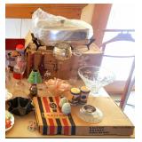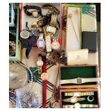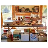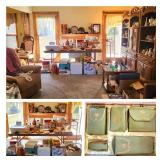 Check out this amazing collection of costume jewelry featuring vintage pieces you don’t want to miss-rings, watches, brooches, bracelets, earrings, necklaces, plus a lovely vintage Princess Gardner wallet ensemble! Enhance your home décor with this fine selection of figurines, stunning mirrors, decanters, lamps and chandeliers, artwork, plated sterling ware, barware, a fun collection of vases and Christmas decor galore! Johnson Brothers dinnerware, vintage Glasbake, enameled cookware, a Black and Decker food processor, Welbilt bread machine, Presto FryDaddy, Jr., Salton food warmer, teapots, and creamer sets await you in the kitchen. A twin hospital bed, dining room set, Saginaw cabinet, armoires, futon bed, women's accessories and more-come find your next treasure! Everything must go!
