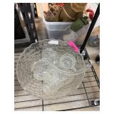 LARGE YORKTOWN GLASS PUNCHBOWL & CUPS |