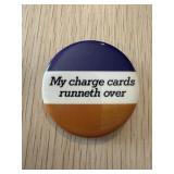 VTG BUTTON MY CHARGE CARDS RUNNETH OVER |