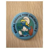 VTG BUTTON SMURFS EQUAL RIGHTS FOR SMURFETTES |