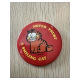 VTG BUTTON GARFIELD NEVER TRUST A SMILING CAT |