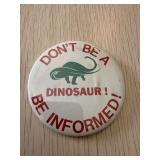 VTG BUTTON DON'T BE A DINOSAUR BE INFORMED |