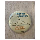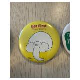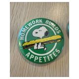 VTG BUTTON SNOOPY HOMEWORK BUILDS APPETITES |