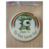 VTG BUTTON CARE BEARS SURE 'N TIS YOUR LUCKY DAY |