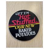 VTG BUTTON GET 'EM HOT STUFFED..NEW BAKED POTATOES |