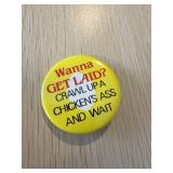 VTG BUTTON WANNA GET LAID CRAWL UP A CHICKENS A$$ |