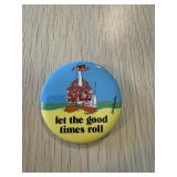 VTG BUTTON LET THE GOOD TIMES ROLL |