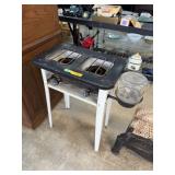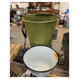 LARGE METAL FLEURS BUCKET & GRANITEWARE |