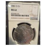 Here's a Treat to All Coin Collectors & Treasure Hunters! Historical Pieces, Unique Collectibles & Maybe Even that Missing Gem for Your Collection! Start Bidding Today! * 1840 O/1847 O Seated Liberty 50c * 1898 O Barber 50c * 1833 Cap Bust 50c * 2013 West Point Eagle Set American Eagles * 1878 Rev 79 Morgan Silver Dollar * 1887/1890 Morgan Silver Dollar * 1904 O Morgan Silver Dollar MS63 * 1902 Morgan Silver Dollar PGA MS64 * 1881 S Morgan Silver Dollar MS65+ * 1883 O Morgan Silver Dollar MS64 * 1879 S Morgan Silver Dollar MS63 * 1955 Double Die Obverse "Gem BU Red" * 1885 Morgan Silver Dollar * and MORE!