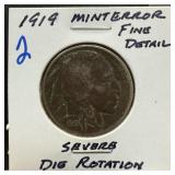 1919 BUFFALO NICKEL SEVERE DIE ROTATION |