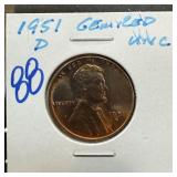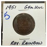 1951 GEM UNC WHEAT PENNY CENT REV RAINBOW |