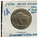 1930 BUFFALO NICKEL MINT ERROR CLASHED |