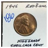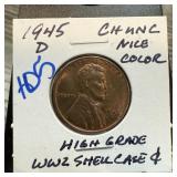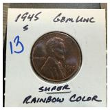 1945-S WHEAT PENNY CENT GEM UNC RAINBOW COLOR |