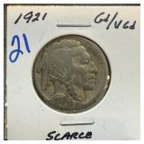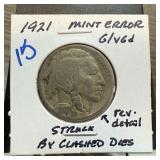 1921 BUFFALO NICKEL STRUCK BY CLASHED DIES |
