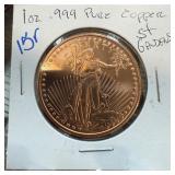 1oz .999 COPPER BULLION EOUND ST GAUDENS |