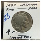 1934 BUFFALO NICKEL WDDO-001 RARE |