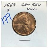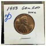 1953 GEM RED UNC WHEAT PENNY CENT |